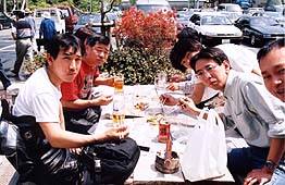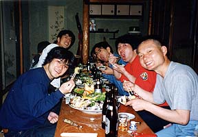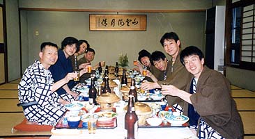走ったあとはお約束の宴会、かんぱ〜い!!! これで1泊2食1万円