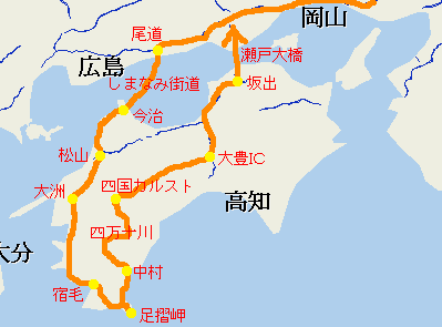 大洲市−−−−−宇和島市−−−−−宿毛市−−−−−土佐清水市−−−−−−足摺岬−−−−