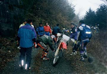 オフのスペシャリスト中村さんと村川さん ウオーミングアップランで谷底に落ちたCRM250AR