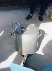 お昼はおいしいお鍋で!絶品ですよ 名物巨大なお鍋